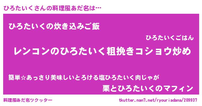 | 意味不明あだ名 | 『自称ひろたいく』『永久保存ひろたいく』 |
