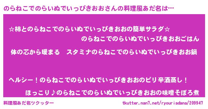 | 伝説のあだ名 | 『秘められし陰陽師のらねこでのらいぬでいっぴきおお』 |