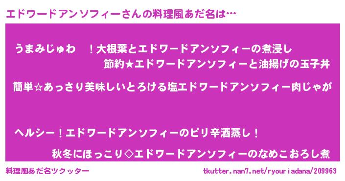 | ヘコむあだ名 | 『エドワードアンソフィー(小並感)』 |