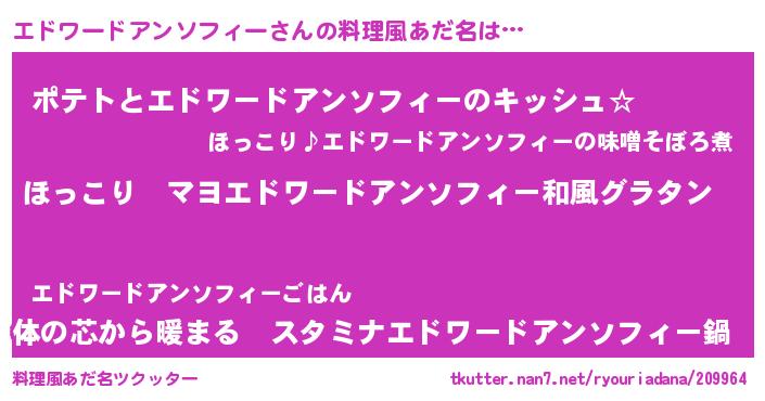 | 意味不明あだ名 | 『住所不定無職エドワードアンソフィー(50歳)』 |