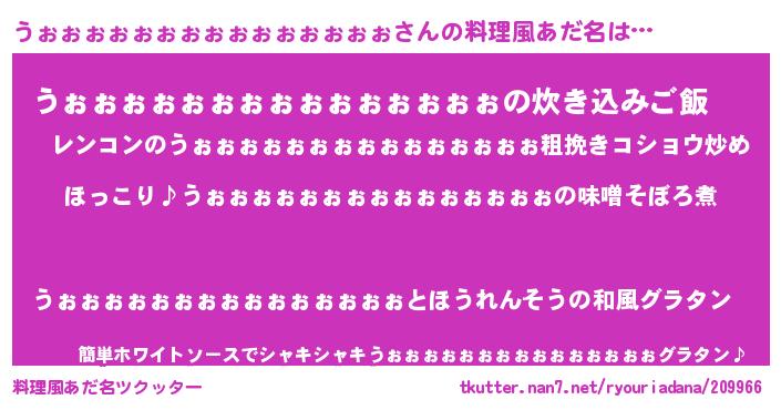 | 男性向けラノベタイトル風あだ名 | 『うぉぉぉぉぉぉぉぉぉぉぉぉぉぉぉの憂鬱』 |