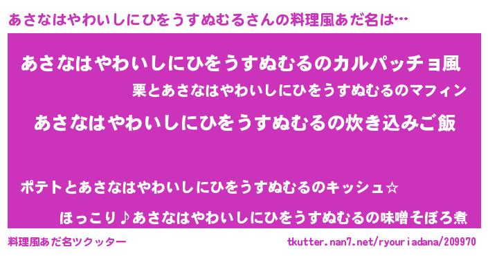 | 恥ずかしいあだ名 | 『プリティーあさなはやわいしにひをうすぬむる』 |