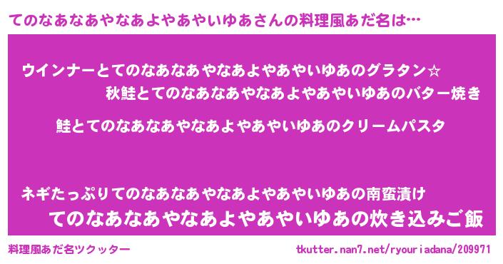 | 女子向けラノベタイトル風あだ名 | 『死神てのなあなあやなあよやあやいゆあの再婚』 |