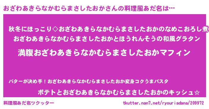| ヘコむあだ名 | 『おざわあきらなかむらまさしたおか(震え声)』 |
