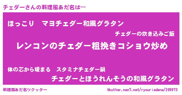 | ヒーロー風カッコイイあだ名 | 『超時空戦士チェダー』『仮面チェダー』 |