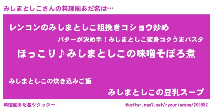 | 胡散臭い通販商品みたいなあだ名 | 『必ず成功する水晶球…その名も「みしまとしこ」』 |