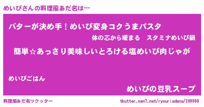 | ヘコむあだ名 | 『めいぴ(遠い目)』『めいっ子』 |