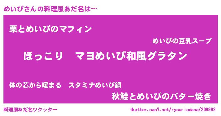 | ピコ太郎風あだ名 | 『ピコメ郎』『メイ二郎』『ピメ次郎』 |