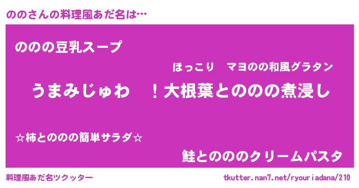 | ヘコむあだ名 | 『酢こんぶ』『ののお』『ののにゅー』 |