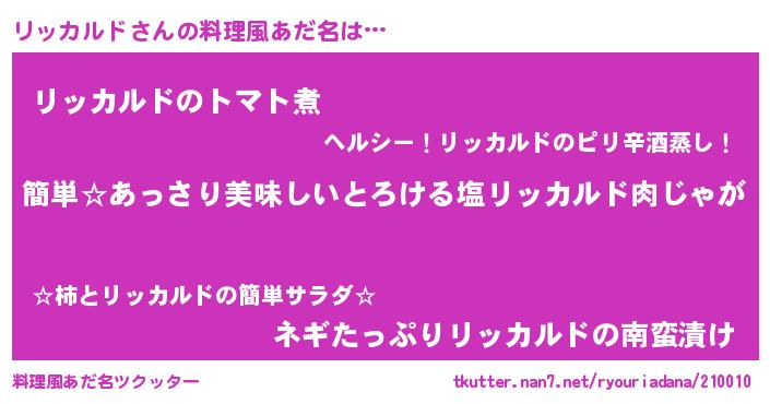 | ヘコむあだ名 | 『リッカルド(小並感)』『リッっふぃ~』 |