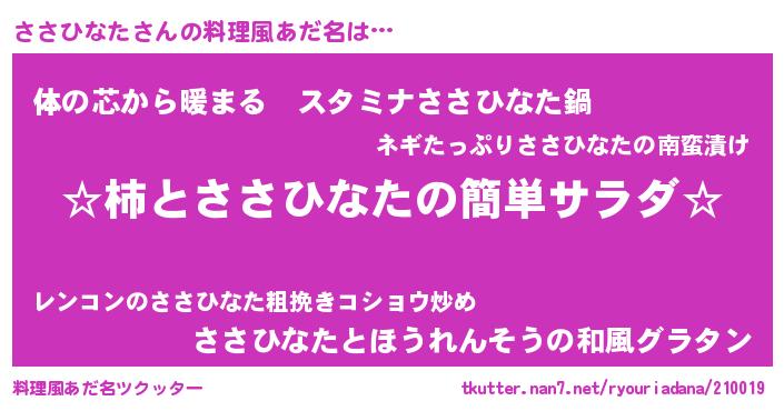 | 意味不明あだ名 | 『ささひなたフォーエバー』 |
