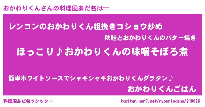 | ヒーロー風カッコイイあだ名 | 『スーパーオカワリクン』『幻影騎士オカ』 |