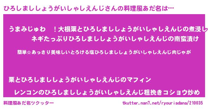 | 意味不明あだ名 | 『永久保存ひろしまししょうがいしゃしえんじ』 |