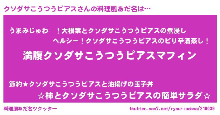 | 可愛いあだ名 | 『クソダサこうつうピアスママ』 |