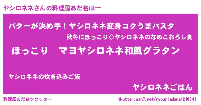 | 意味不明あだ名 | 『住所不定無職ヤシロネネ(84歳)』 |