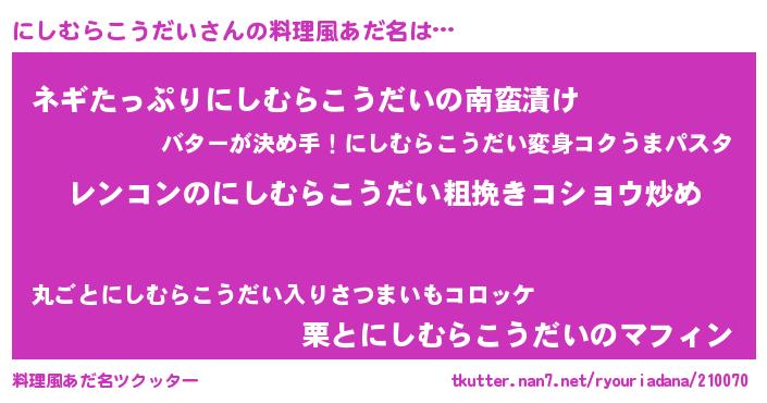 | 意味不明あだ名 | 『自称にしむらこうだい』 |