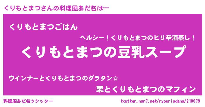 | 胡散臭い通販商品みたいなあだ名 | 『信頼と実績のサプリメント…その名も「くりもとまつ」』 |