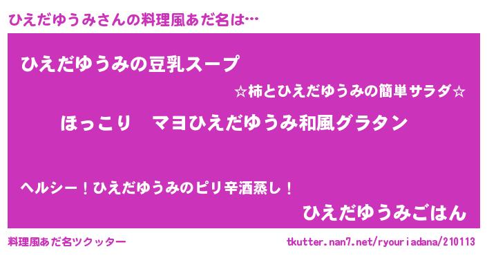 | 意味不明あだ名 | 『住所不定無職ひえだゆうみ(56歳)』 |