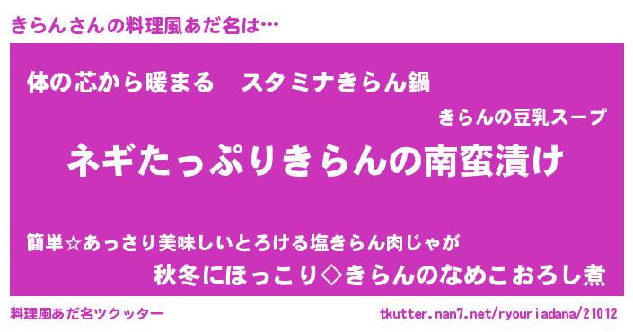 | 男性向けラノベタイトル風あだ名 | 『キランアートオンライン』 |