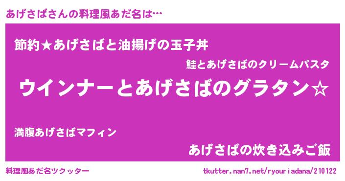 | ヒーロー風カッコイイあだ名 | 『ウルトラあげさばマン』『ネオアゲサバ』 |