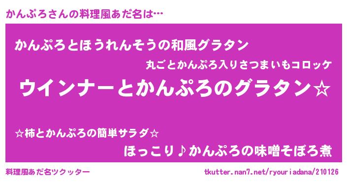 | 意味不明あだ名 | 『かんぷろフォーエバー』 |