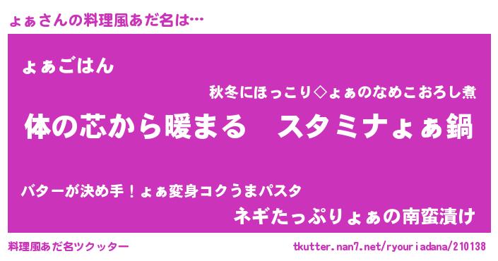 | 女子向けラノベタイトル風あだ名 | 『ょぁの雑貨屋さん』『ょぁ恋絵巻』 |