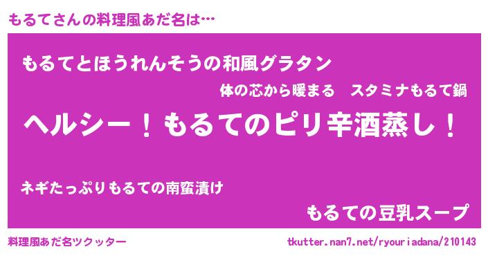 | 胡散臭い通販商品みたいなあだ名 | 『芸能人もオススメするアガリクス…その名も「もるて」』 |