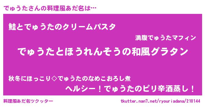 | ヘコむあだ名 | 『でゅうた(震え声)』『レバニラ』 |