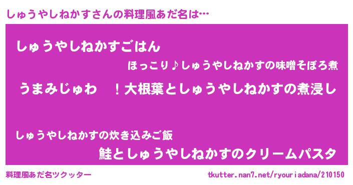 | 欧米人風あだ名 | 『しゅうやしねかすクリステル』 |
