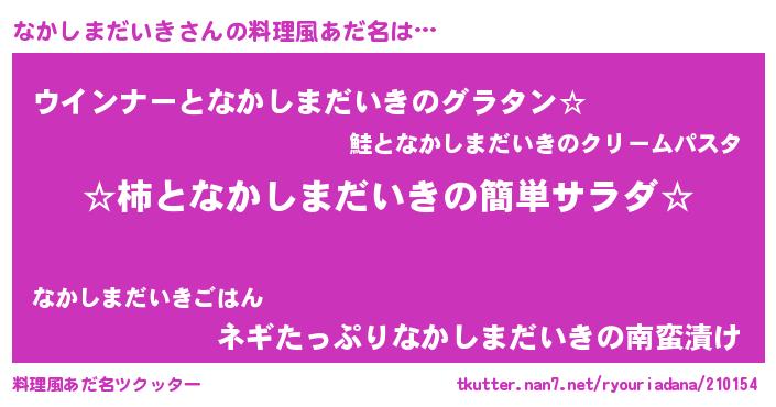 | 恥ずかしいあだ名 | 『なかっちょ』『ボンバーヘッドなか』 |