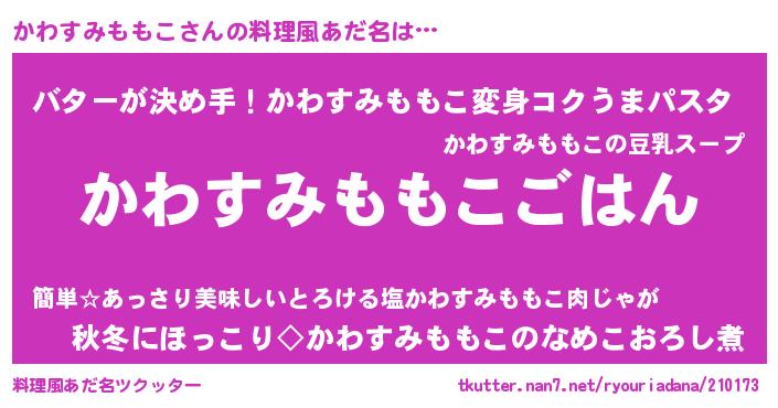 | 男性向けラノベタイトル風あだ名 | 『カワスミモモコスレイヤー』 |