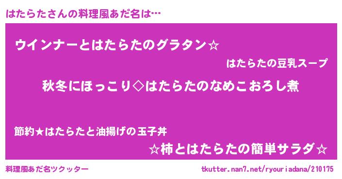 | ポケモン風あだ名 | 『ハタゴンZ』『ハタラダネ』 |