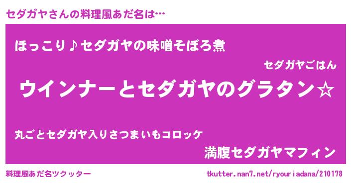 | 欧米人風あだ名 | 『セダガヤクリステル』 |