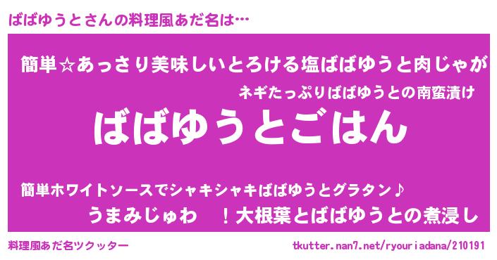 | 胡散臭い通販商品みたいなあだ名 | 『絶対に幸福をもたらす水素水…その名も「ばばゆうと」』 |