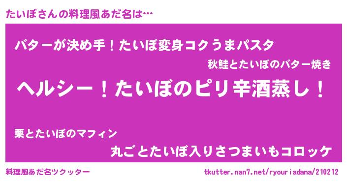 | ヘコむあだ名 | 『たいぼ(笑)』『なまこ酢』 |