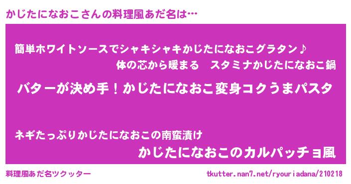 | 男性向けラノベタイトル風あだ名 | 『おまえをオタクにしてやるから、俺をかじたになおこにしてくれ! 』 |