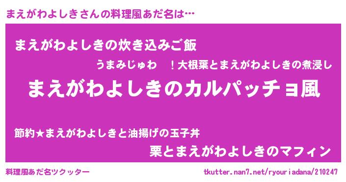 | 意味不明あだ名 | 『住所不定無職まえがわよしき(91歳)』 |