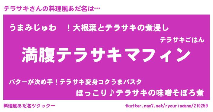 | 胡散臭い通販商品みたいなあだ名 | 『絶対に幸福をもたらす水素水…その名も「テラサキ」』 |