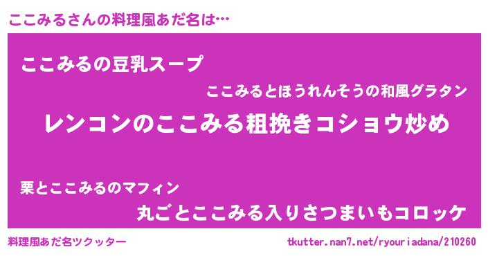 | 胡散臭い通販商品みたいなあだ名 | 『テレビで話題の高麗人参…その名も「ここみる」』 |
