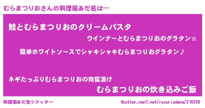 | ポケモン風あだ名 | 『ヒムラマツリオ』『ムックウザ』 |
