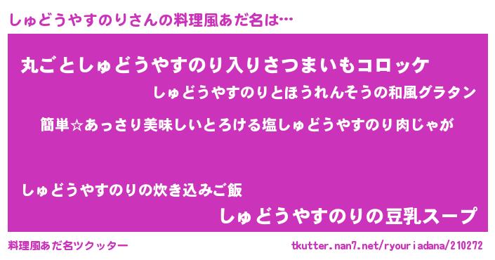 | ヘコむあだ名 | 『しゅどうやすのり(笑)』『しゅ太郎』 |