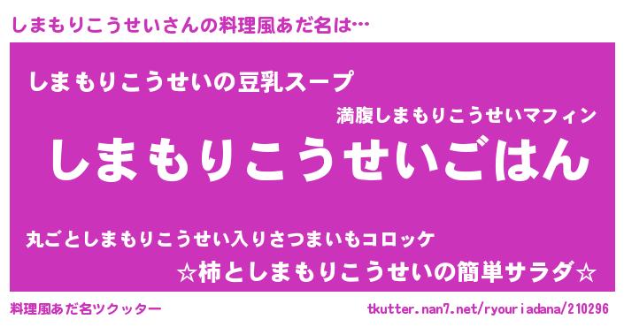 | 胡散臭い通販商品みたいなあだ名 | 『信頼と実績のネックレス…その名も「しまもりこうせい」』 |