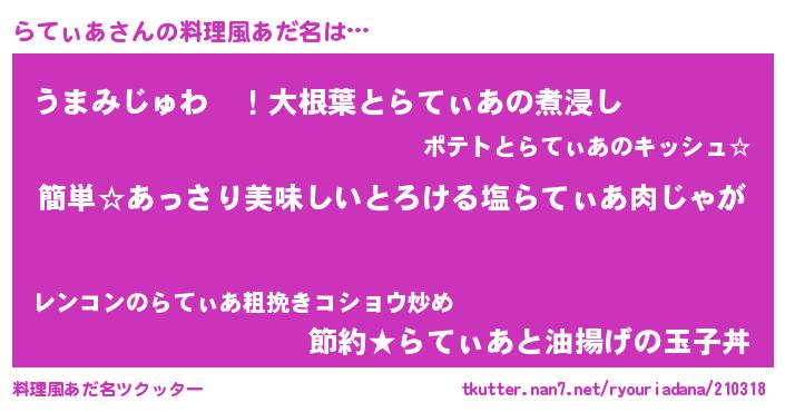 | 意味不明あだ名 | 『永久保存らてぃあ』『ペロリンらてぃあ』 |