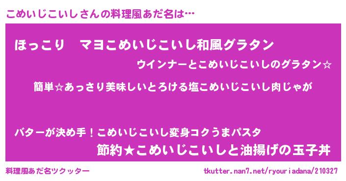 | ヘコむあだ名 | 『こめいじこいし(遠い目)』『こめにゅー』 |