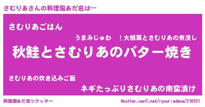| ヘコむあだ名 | 『さむりあ(小並感)』『さむにー』 |
