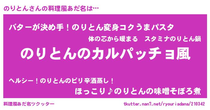 | 男性向けラノベタイトル風あだ名 | 『魔弾の王とのりとん』『のりとんの憂鬱』 |