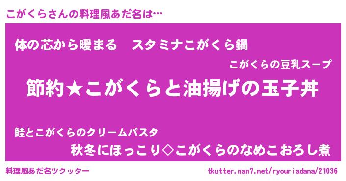 | 男性向けラノベタイトル風あだ名 | 『こがくらの憂鬱』 |