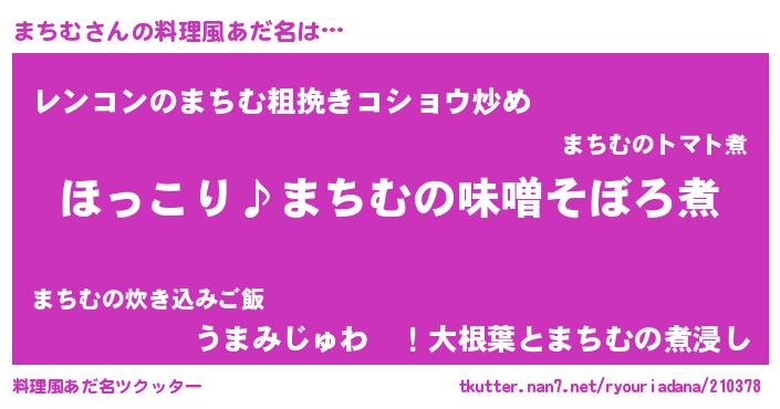 | ヘコむあだ名 | 『まちにゅー』『なまこ酢』『まちお』 |