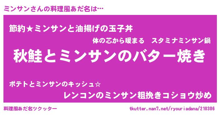 | 意味不明あだ名 | 『永久保存ミンサン』『ペロリンミンサン』 |