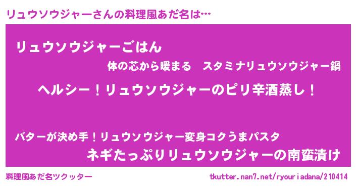 | 男性向けラノベタイトル風あだ名 | 『Re:リュウソウジャーから始める異世界生活』 |